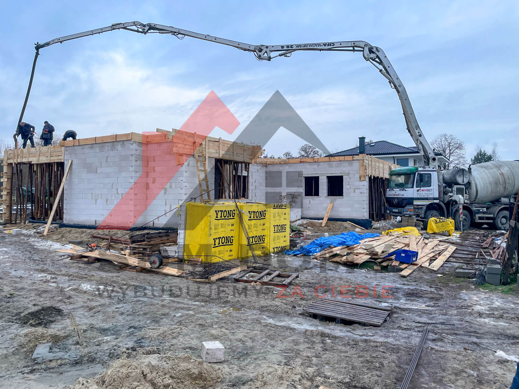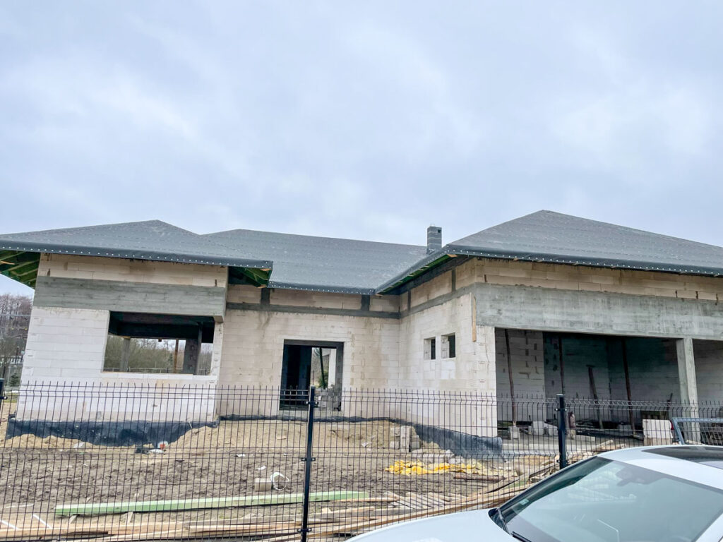 Dom został zbudowany z bloczków betonu komórkowego Ytong, który jest jednym z najbardziej innowacyjnych materiałów na rynku budowlanym. Wykorzystanie Ytongu gwarantuje nie tylko doskonałą izolacyjność termiczną, ale także odporność na warunki atmosferyczne oraz długotrwałość. Ponadto, bloczki te są przyjazne dla środowiska i zapewniają zdrowy mikroklimat wnętrza.